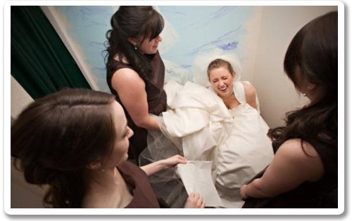 Ó, a csodás abroncsos menyasszonyi ruhák! A hatalmas szoknyák, amiben királylánynak érezhetjük magunkat! De állj: mi van ha pisilni kell?